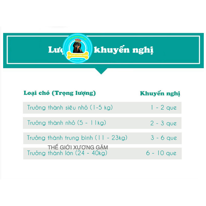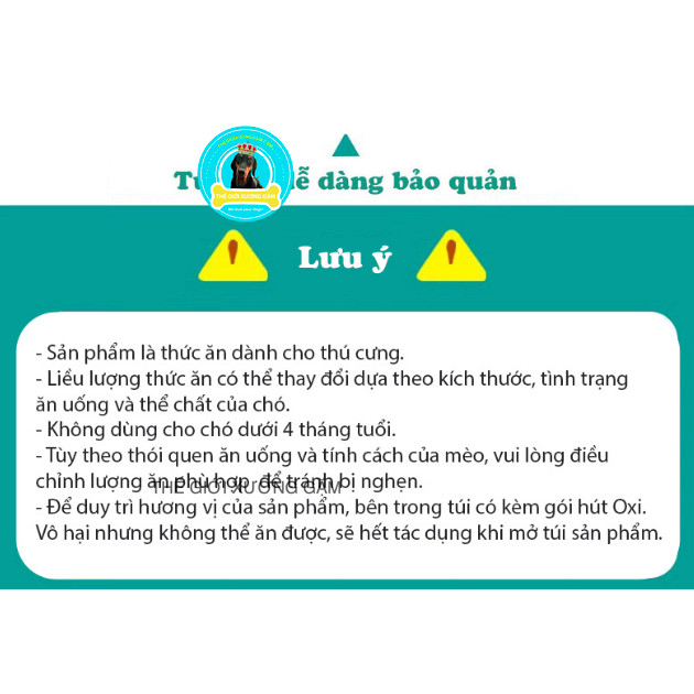 - Sản phẩm là snack ăn vặt dùng với mục đích khen thưởng và huấn luyện, không cho ăn quá nhiều và không dùng thay thế bữa ăn chính/phụ của cún