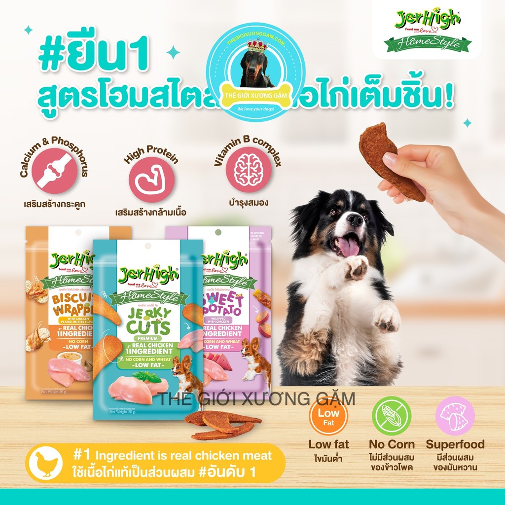 Jerhigh Homestyle Snack Mới Sẵn sàng phục vụ chú chó yêu quý của bạn với 3 hương vi: