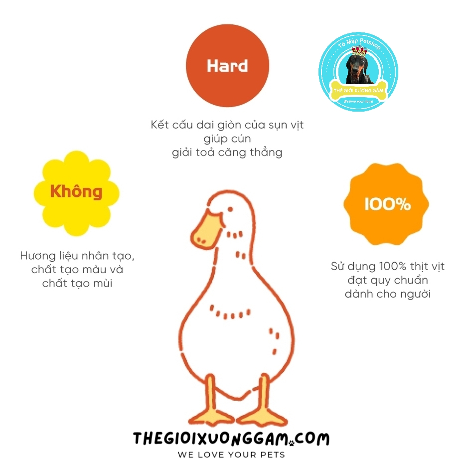 Bánh thưởng cho chó được làm từ sụn vịt kết hợp với thịt vịt tươi, kết cấu dai dai giúp “bé cưng” giảm stress khi phải ở nhà một mình.