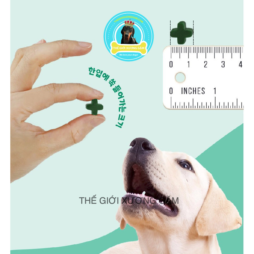 - Dạng viên nhai mềm 1.3cm , dễ dùng, đặc biệt phù hợp với chó con, chó già – hỗ trợ hệ miễn dịch yếu.