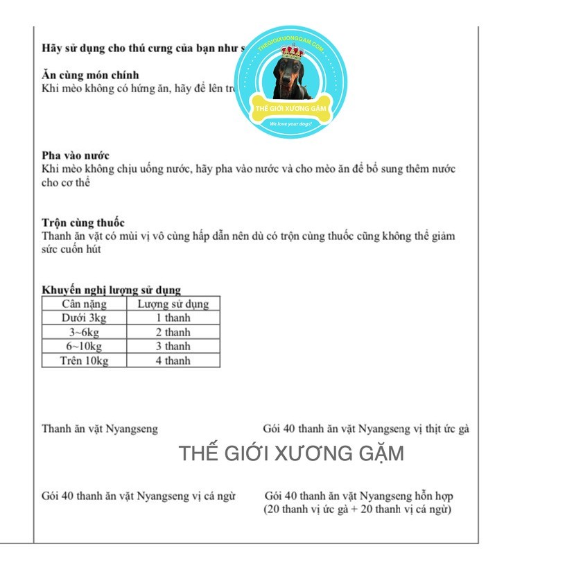 - Sản phẩm thanh ăn vặt Nyangseng của Myvef được chế biến từ nguồn nguyên liệu có chất lượng tốt nhất, được tuyển chọn nghiêm ngặt và sản xuất theo tiêu chuẩn quản lý chất lượng khắt khe nên quý khách có thể yên tâm sử dụng cho thú cưng.